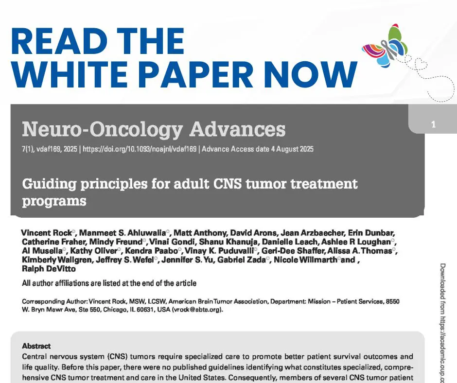 In August 2025, a groundbreaking White Paper was published in Neuro-Oncology Advances—marking a pivotal moment for adult CNS tumor treatment in the United States. Our Patient Advocate, Geri Shaffer, was…