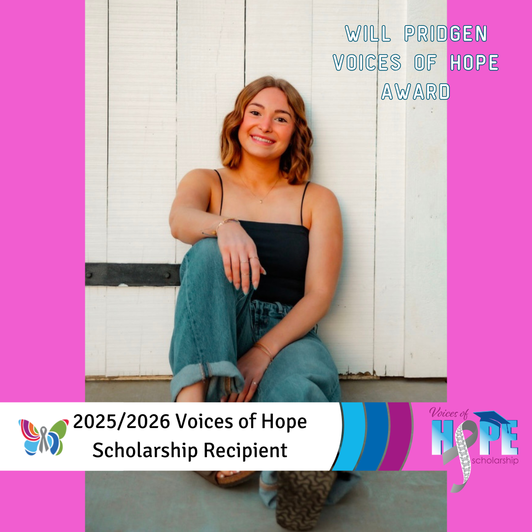 In keeping with his passion for helping others, the “Will Pridgen Voices of Hope (VOH) Scholarship” was created. It is the HOPE of Will’s Family and the SBTF to carry on the scholarship in his honor. The award is meant to assist students, whose lives have been affected by either their own brain tumor diagnosis, or that of a close family member; to obtain a post-secondary education at an accredited College, University, or Technical school in the field of Fine Arts.