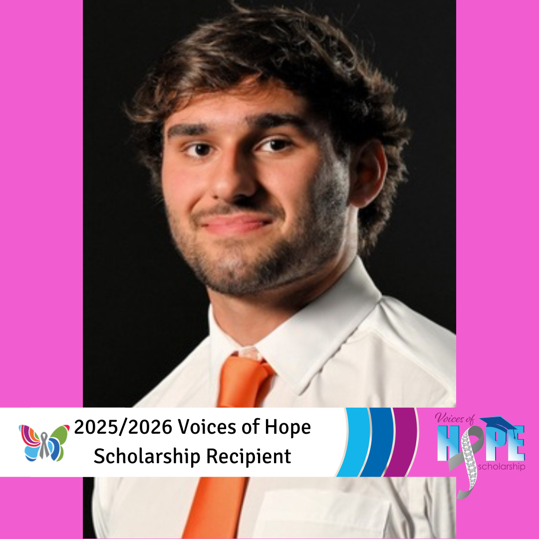“I am honored to be a recipient of the Voices of Hope Scholarship. With the help of this scholarship, I will focus my studies on exercise science to get into physical therapy graduate school. Physical therapists made a significant impact on my dad’s life throughout his journey after he was diagnosed with a brain tumor. I am committed to paying it forward by positivity impacting as many lives as possible. Thank you to the Southeastern Brian Tumor Foundation for this fantastic opportunity.”